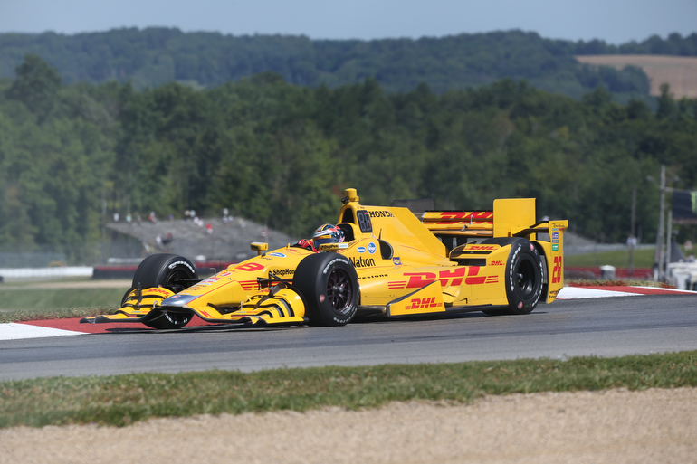 Ryan Hunter-Reay enters the Turn 2 Keyhole turn during practice for the Honda Indy 200 at Mid-Ohio — Photo by: Chris Jones