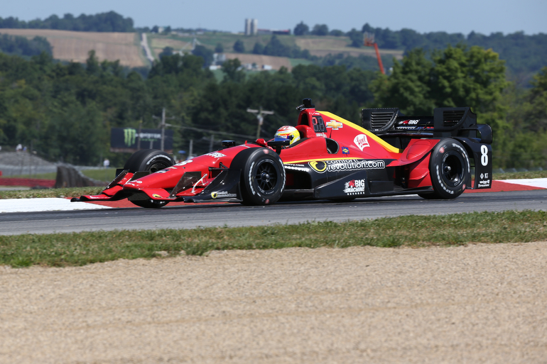 Sebastien Bourdais enters the Turn 2 Keyhole turn during practice for the Honda Indy 200 at Mid-Ohio — Photo by: Chris Jones