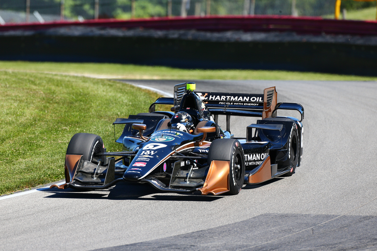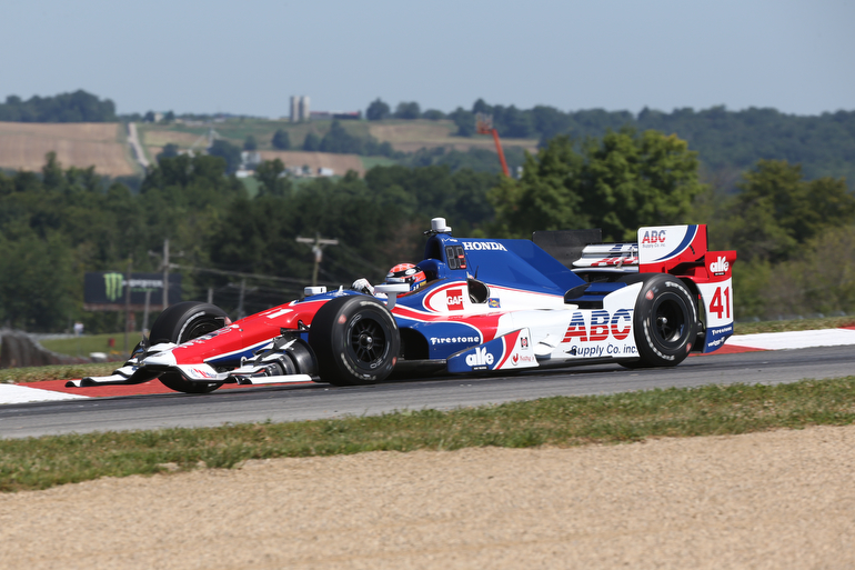 Jack Hawksworth enters the Turn 2 Keyhole turn during practice for the Honda Indy 200 at Mid-Ohio — Photo by: Chris Jones